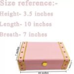 Present Pink Decorative Storage Trunk Box Wooden Organizer with Gold Metal Accents & Lock | Multipurpose Jewellery, Keepsake, Gift Box for Girls, Bedroom & Home D?cor
