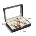 Presents Luxury 12 Slot Watch Box for Men & Women Lockable Leather Watch Organizer with Glass Lid, Soft Velvet Cushions, Premium Display & Storage Case for Watches (Black)