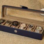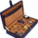 Presents Luxury 6 Slot Watch Box for Men & Women Lockable Leather Watch Organizer with Glass Lid, Soft Velvet Cushions, Premium Display & Storage Case for Watches (Blue)