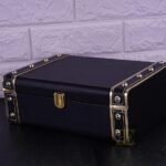 Present Luxury Black Decorative Storage Box Faux Leather Wooden Trunk with Gold Metal Studs & Lock | Multipurpose Organizer for Jewellery, Keepsakes, Gifts & Home D?cor