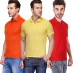 Men’s Polo Neck Short Sleeve Casual Tshirt Combo of Red, Orange, Yellow colors (Pack of 3)