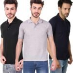 Men’s Polo Neck Short Sleeve Casual Tshirt Combo of Dark Blue, Black, Grey colors (Pack of 3)