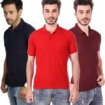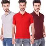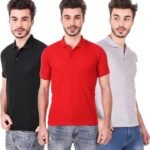 Men’s Polo Neck Short Sleeve Casual Tshirt Combo of Red, Black, Grey colors (Pack of 3)