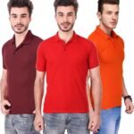 Men’s Polo Neck Short Sleeve Casual Tshirt Combo of Red, Maroon, Orange colors (Pack of 3)