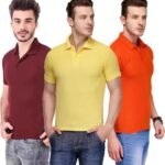 Men’s Polo Neck Short Sleeve Casual Tshirt Combo of Maroon, Orange, Yellow colors (Pack of 3)