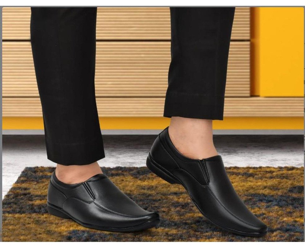 Men’s Faux Leather Formal Shoes, ? Color: Black, ? Material: Faux Leather, ? : 6, ? Closure Type: Slip-On, ? Heel Type: Flat, ? Type: Formal Shoes, ? Disclaimer: The color of actual product may vary slightly from the images provided due to photographic lighting conditions and difference in screen resolutions.